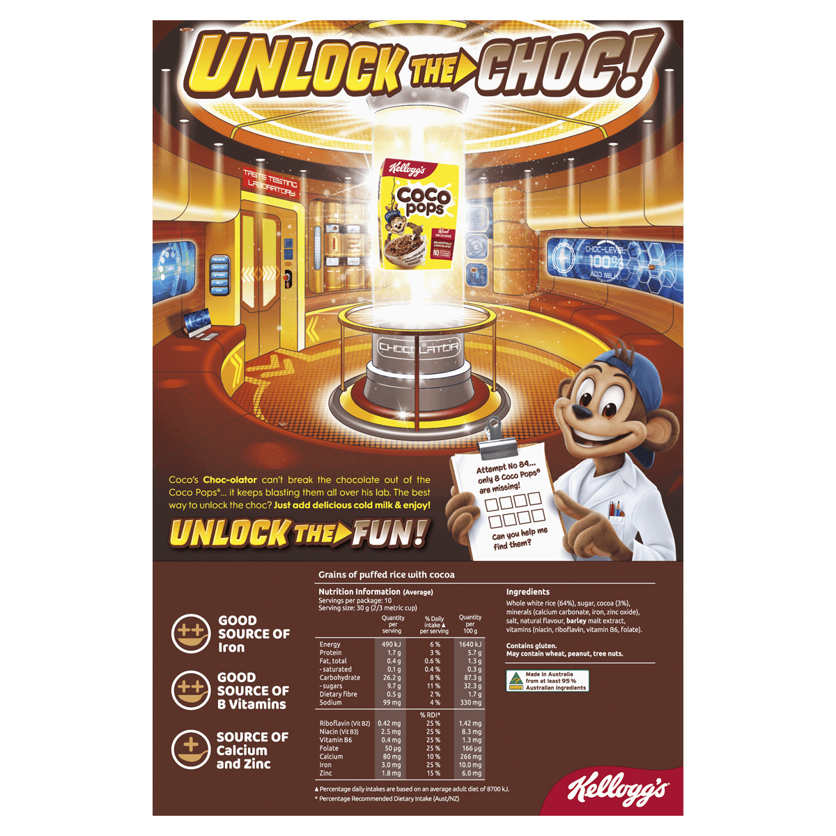 Coco Pops® is the tasty breakfast treat that kids have loved for generations. Coco Pops® and milk are just like a chocolate milkshake, only crunchy! Why not surprise the kids with an afternoon treat of Coco Pops?