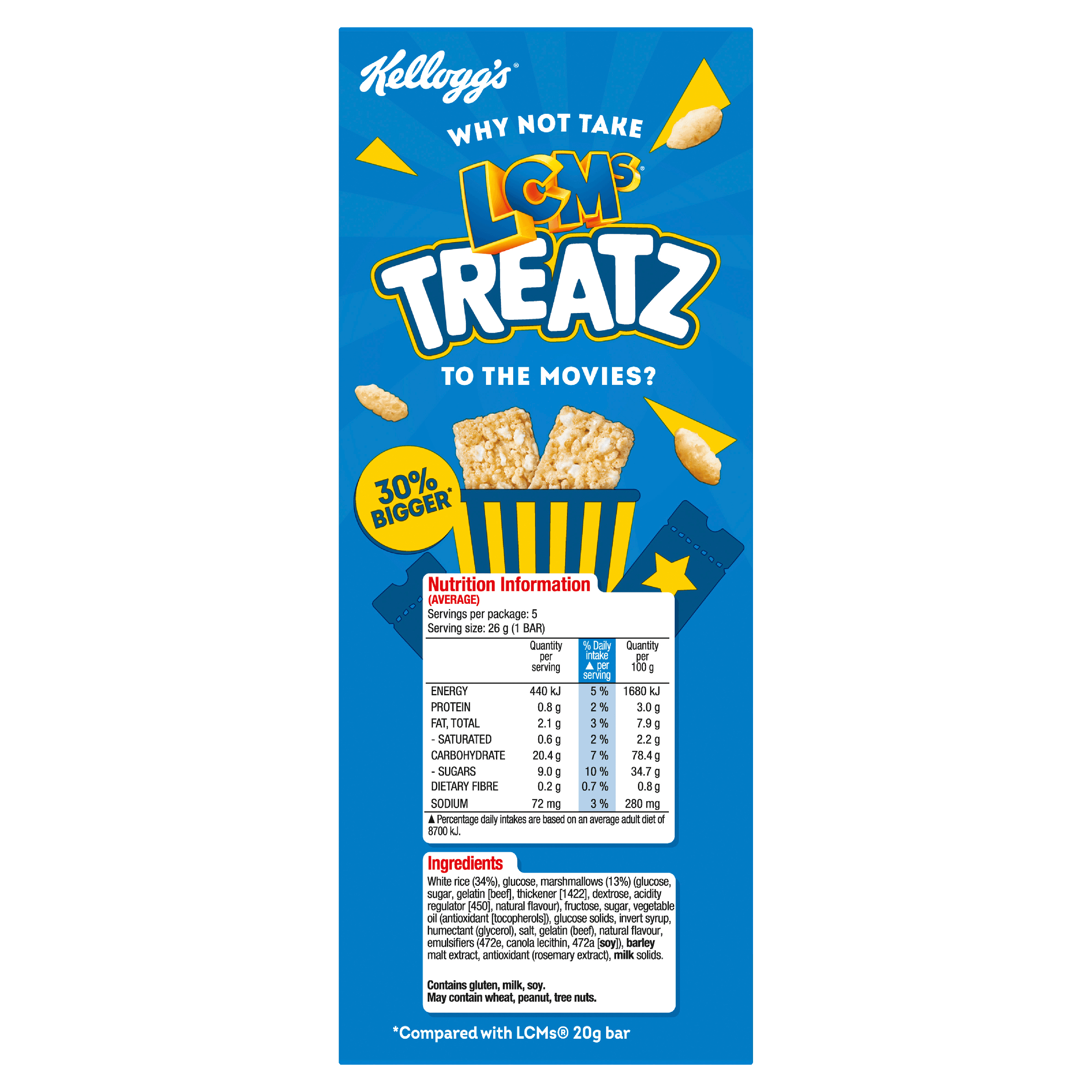 Kellogg's® LCMs® Treatz Original are made with the awesomeness of puffed rice, folded in with real marshmallows for an indulgent taste experience.